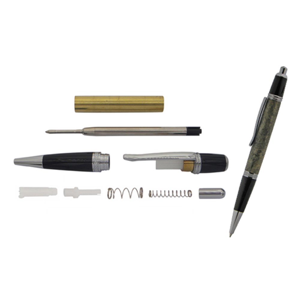 Chrome plated with combination of Black Chrome Click Pen Kit exhibits mystery, flair and elegance. With its streamlined look, striking black components and smooth click mechanism it will surely compliment any executive's desk. Accepts Parker style ball point refills, easy to make with a single tube. Plus, the plating offers a bright pure gold/chrome colour that will give your project a rich and luxurious look.