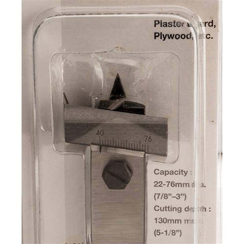 This expanding bit is both easy to use and features positive adjustment for holes between 22mm and 76mm. For use in a drill press.