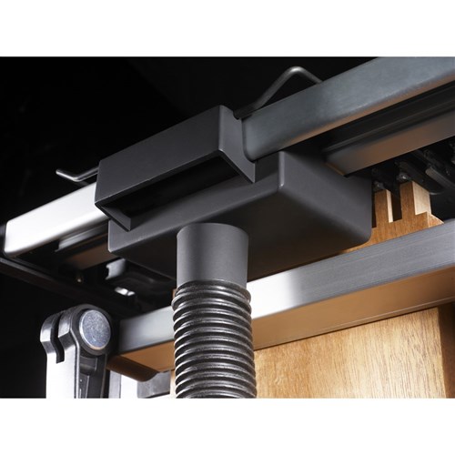 On top of the VRS are the adjustable control arms, the router sits between these arms moving the dust chute with the router. This means the duct chute is always where the cutting is being done, providing the most effective dust extraction possible.