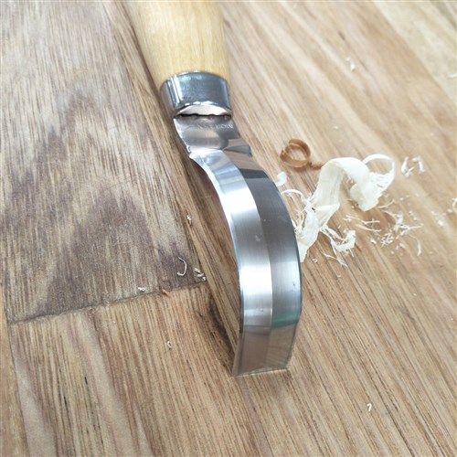 Already honed, it is ready for use for carving internal shapes such as bowls and spoons. The large handle is comfortable, giving good control.