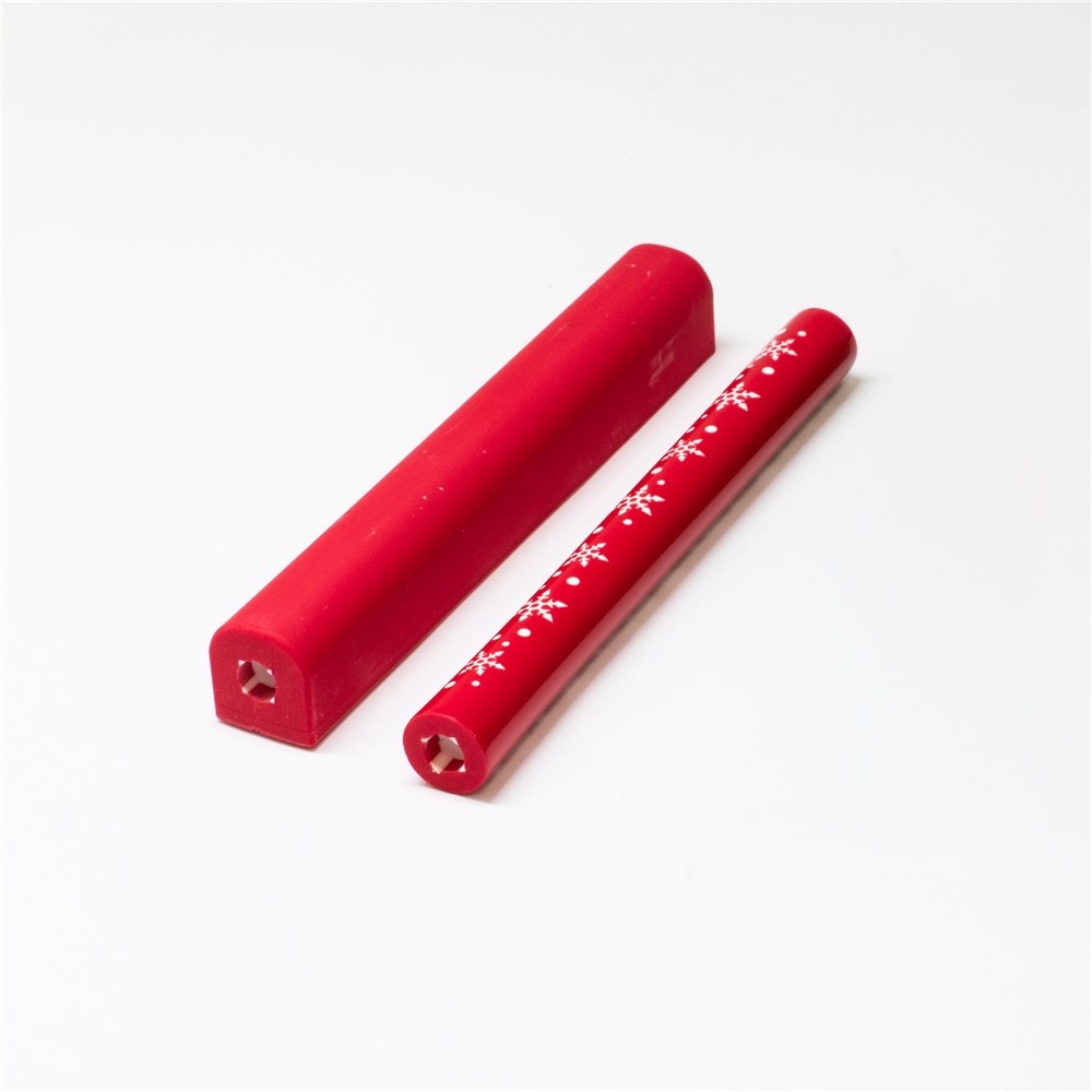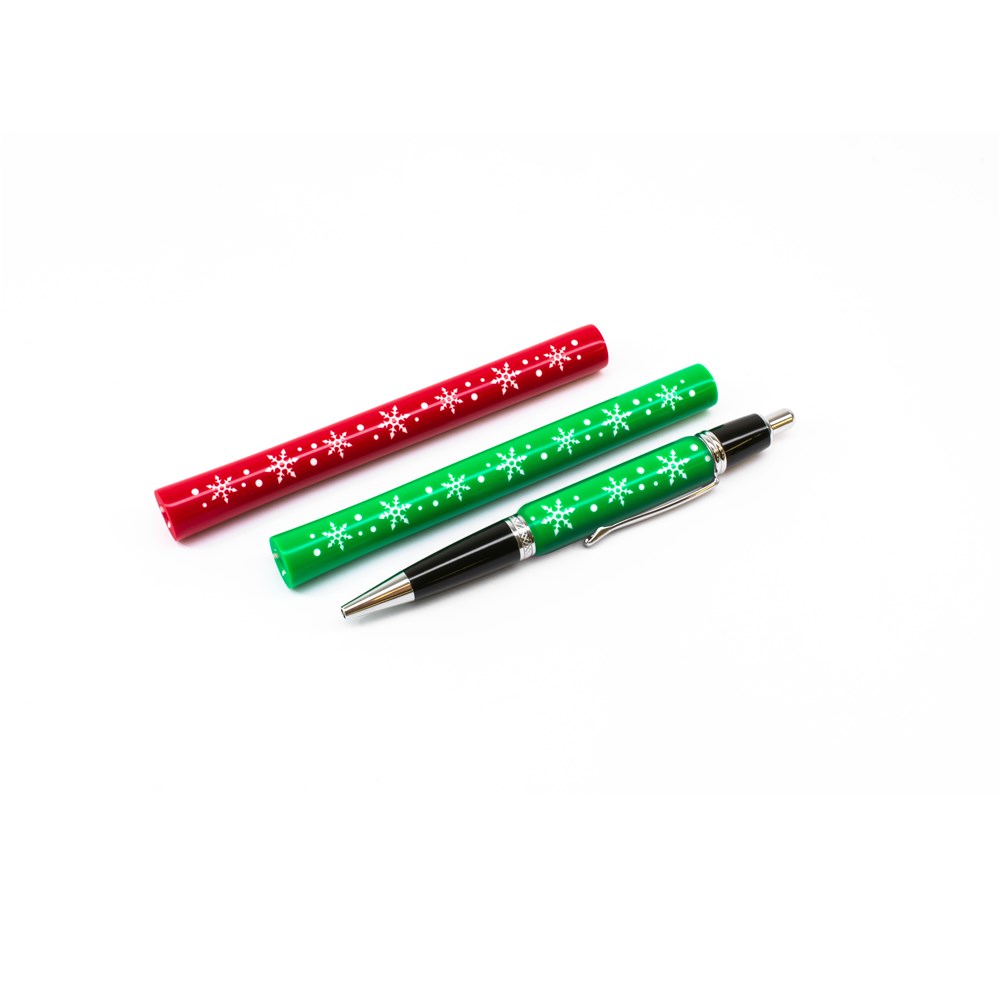 Add a little holiday and festive spirit with a pen made from a Snowflake Acrylic Pen Blank. Snowflakes (7) are evenly distributed over the entire 130.5mm blank, making it a perfect pairing for many single barrel pen kits or for use as an accent on a double barrel kit (cut up your own length). Sharp tools and light passes are a must! Optimum finished turned diameter is between 12.5mm and 14.5mm. We recommend that you pre-turn the blank so you can locate the pattern prior to cutting off. Blank measures 19mm x 19mm x 130.5mm.