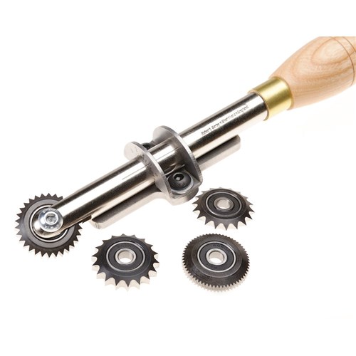 Another variation is introduced with the addition of three different cutters which can also be used for texturing. From these the turner can either produce amongst other works fine spirals on the stem of a delicate goblet, chequered designs, rope effect twists, heavy patterns on boxes, spindles or candlesticks as well as around the base.