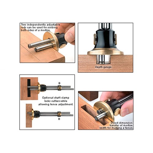 Used to cut fibres on timber when doing joints such as mortices and tenons, the bevels are designed to provide the relief on the correct side of the line for the chisel. Use the outside cutter, positioned on the end of the steel shaft to measure the depth of a mortice to transfer this to tenon, ready for cutting.